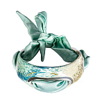 Браслет с блестящим эмалевым покрытием и шелковой лентой. Сочетание бирюзового и молочного цветов создает захватывающий эффект омбре.Характеристики: