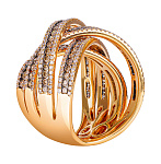 Уникальное по своим форме и стилю кольцо с дорожками, инкрустированными сияющими бриллиантами.Характеристики: