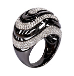 Дизайн золотого кольца восхищает своими плавными изгибами. Уникальная форма изделия украшена сияющими бриллиантами.Характеристики: