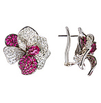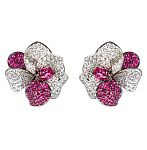 Серьги в форме цветка, лепестки которого усыпаны рубинами и бриллиантами, станут достойным дополнением к вечернему наряду. Центр изделия украшает розовый рубеллит огранки "груша".Характеристики: